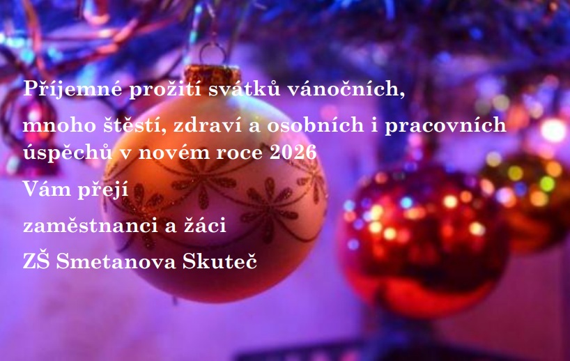 Příjemné prožití svátků vánočních, mnoho štěstí, zdraví a osobních i pracovních úspěchů v novém roce 2026 Vám přejí zaměstnanci a žáci ZŠ Smetanova Skuteč
