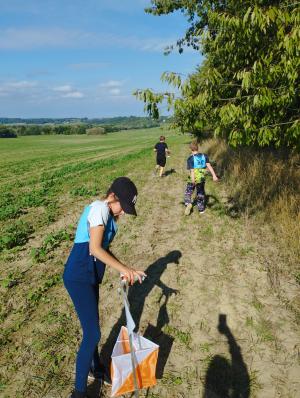 V září jsme ještě - se všemi našimi kamarády z 1.stupně - stihli orientační běh. Vlastně to byl spíš běh na dlouhou trať, protože mapu jsme neměli, přesto jsme se museli v terénu okolo zbožnovského rybníka nějak zorientovat a zkusit si "cvaknout" u jednotlivých stanovišť.
