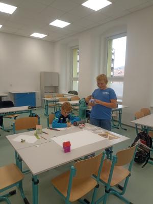 Třída 7.A pod vedením paní učitelky Dočkalové připravila pro děti prvního stupně hravé činnosti.